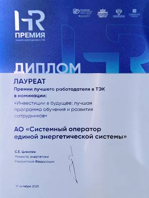 Системный оператор стал лауреатом Премии лучшего работодателя в ТЭК