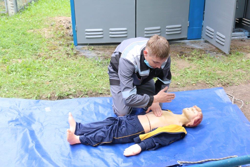 В ходе шестого этапа «Реанимация и оказание первой помощи» участники соревнований демонстрировали практические навыки по освобождению пострадавшего от контакта с токоведущими частями оборудования и оказанию ему первой медицинской и экстренной реанимационной помощи.