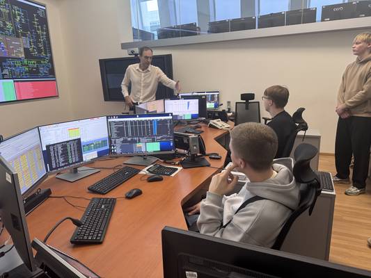 В диспетчерском зале ОДУ Северо-Запада старший диспетчер оперативно-диспетчерской службы Александр Кузнецов познакомил ребят с особенностями ОЭС Северо-Запада, принципами управления работой объектов генерации и электросетевого комплекса, расположенных на территории 10 регионов СЗФО. Студенты узнали о текущей работе диспетчеров и о том, какую подготовку они проходят, чтобы в режиме реального времени 24/7 управлять слаженной работой энергообъектов.
